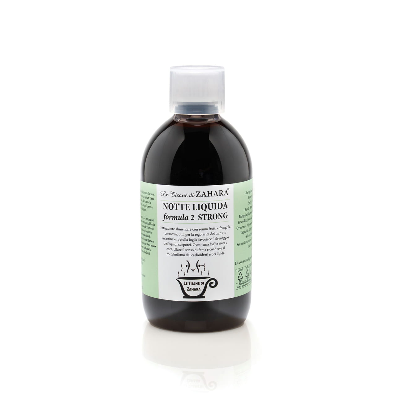 Extracto acuoso de Tisana Noche (agua, Sen (Cassia angustifolia M. Vahl.) folículos, Frángula (Rhamnus frangula L.) corteza, Abedul (Betula pubescens Ehrh.) hojas, Hinojo (Foeniculum vulgare Mill.) frutos, Regaliz (Glycyrrhiza glabra L.) raíz, Gymnema (Gymnema sylvestre R. Br.) hojas, Salvia (Salvia officinalis L.) hojas); Sen (Cassia angustifolia M. Vahl.) hojas extracto seco, ácido cítrico, sorbato de potasio, maltodextrina.